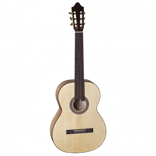 La Duke Meister AF è una chitarra da concerto completamente in massello, realizzata secondo il classico principio costruttivo spagnolo. Con una tavola armonica in abete svizzero d’alta quota massello e un corpo in acero fiammato massello, la Meister F combina legni pregiati e li completa con meccaniche di qualità black-gold di DERJUNG e corde Savarez. Oltre all’attenta produzione, ogni Duke viene sottoposta a una revisione di circa un’ora da parte di un liutaio di Tubinga, in Svevia. Questo garantisce che tutte le Duke vengano spedite con tasti e corde appena levigati e lucidati, pronti per essere suonati. Questo garantisce una chitarra da concerto piacevole da suonare fin dal primo giorno.